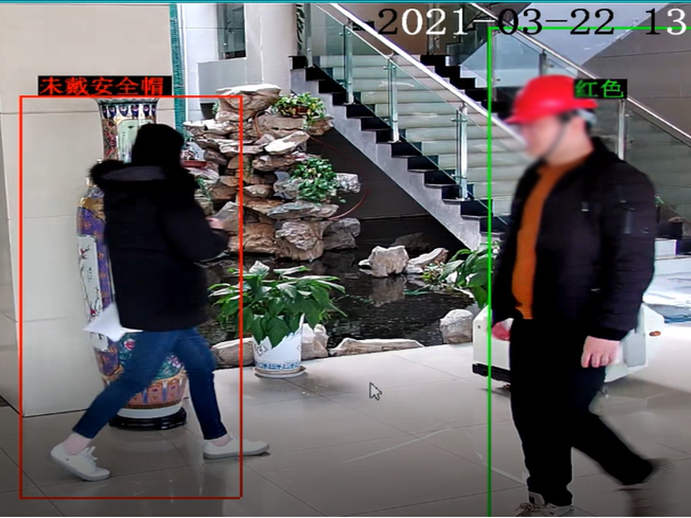 安全帽佩戴情况由底层画框叠加至视频流,方便平台监控。